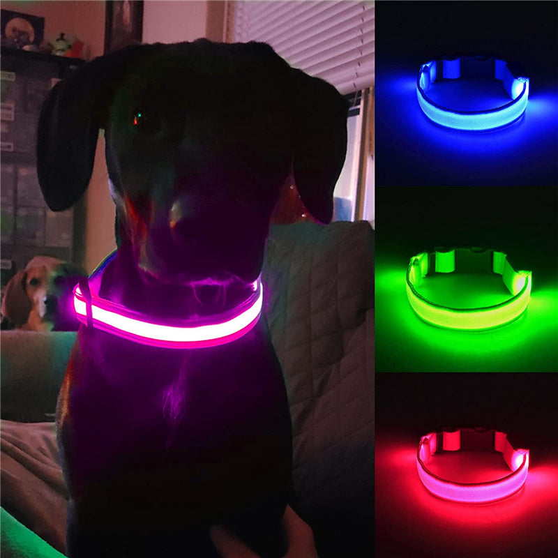 The Light-Up Pet Collar is a lightweight, comfortable, and adjustable collar that serves as a safety device for pets during nighttime walks.