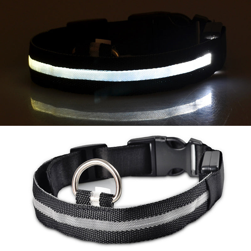 NYLON WEBBING WITH LIGHT STRIP: Made of nylon webbing with a light guide, the collar enhances the visibility and safety of pets during nighttime walks.