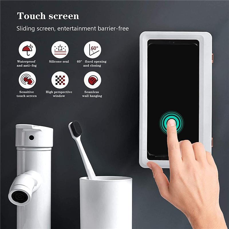 Anti-Fog and Waterproof: This shower phone holder waterproof anti-fog touch screen does not affect the sound.Even if there is fog in bathroom or kitchen,it will not affect the clarity of the phone screen.