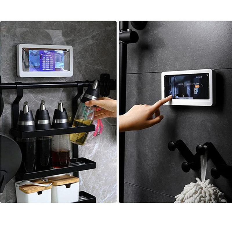 Enjoy TV While Bathing or Cooking: The wall mounted phone holder can effectively anti-splash,watch movies & listen to music while having a shower or cooking without worrying about your phone getting wet or damaged,you won't miss the live show or live match playing on TV even when you are busy in bathroom.