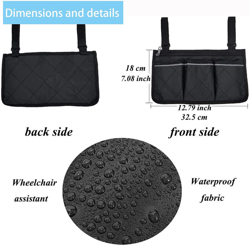 Application: Hang this side pouch bag on the armrest or handlebar of your mobility aids like wheelchairs, walkers, rollators, scooters, etc.