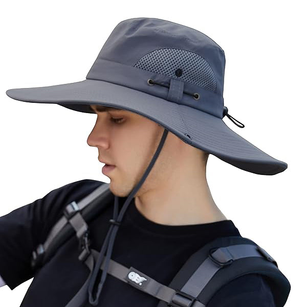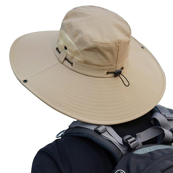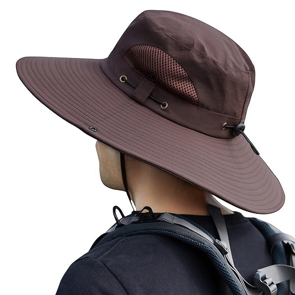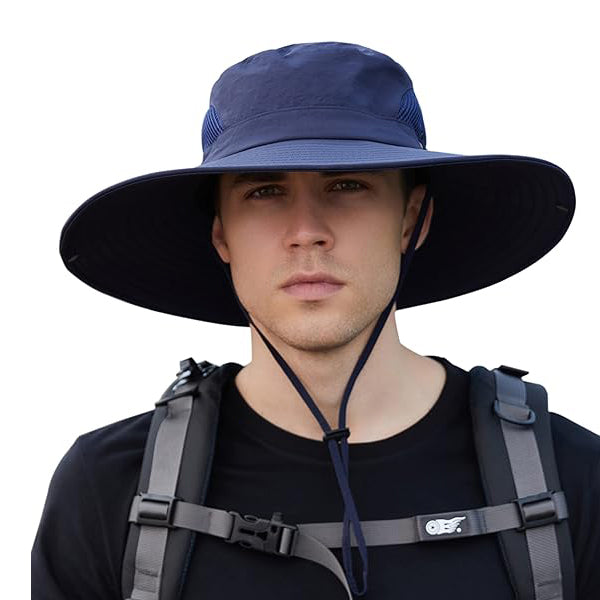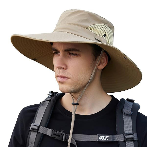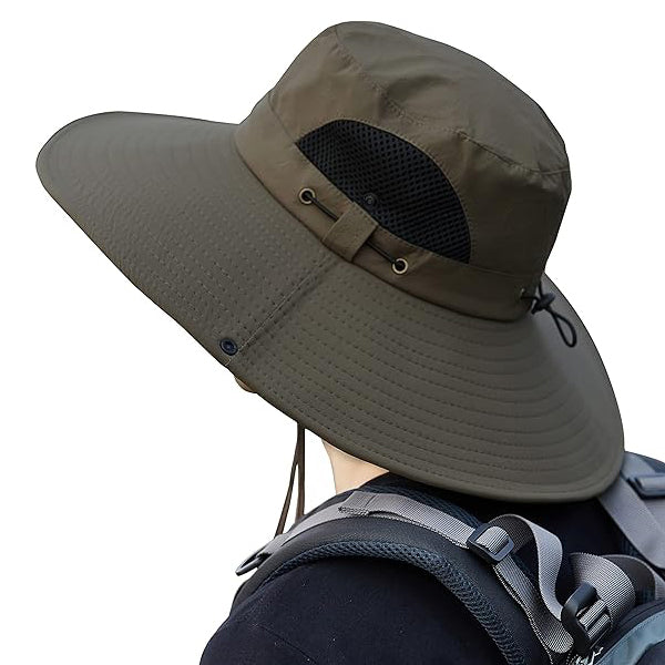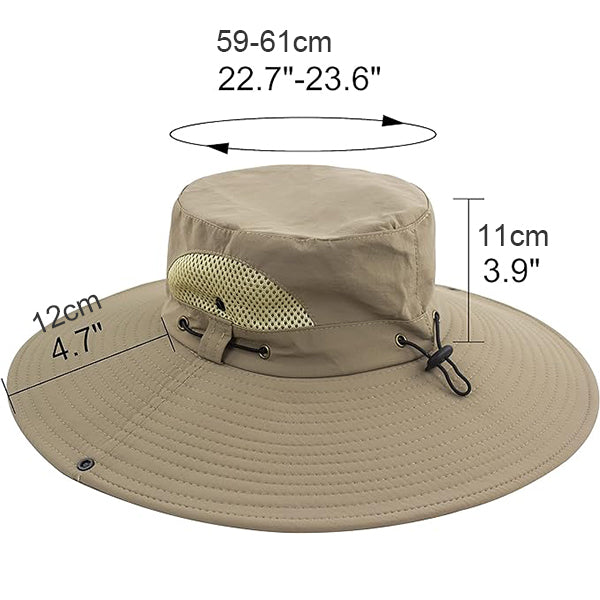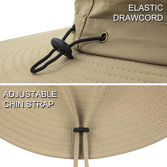 One Size Fits Most: This casual safari bucket hat fits most men with a head circumference of 59-61cm. It features a rear adjustable elastic drawstring strap and an adjustable chin strap to secure the hat in windy or rainy conditions.