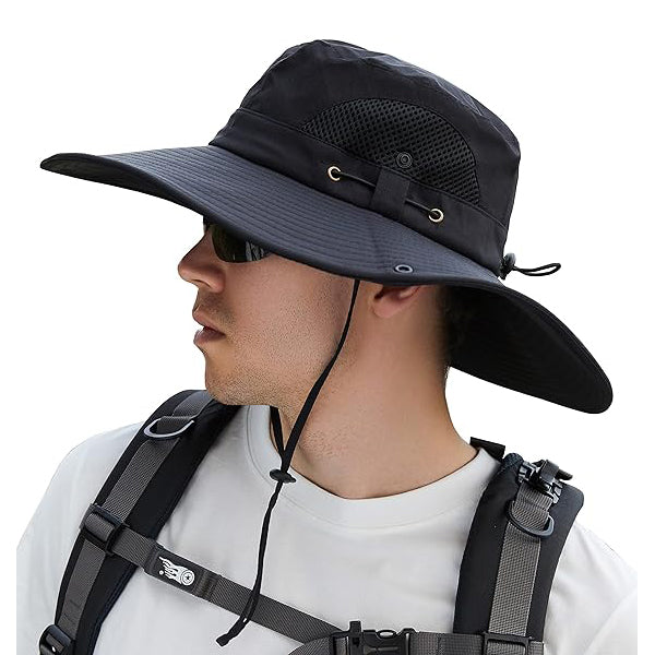 Super Wide & Stylish: The hat boasts a 12cm extra-large brim, effectively blocking sun rays from all directions without obstructing your line of sight. It can be transformed from a cowboy-style hat to a regular hat with foldable side snaps for different occasions.