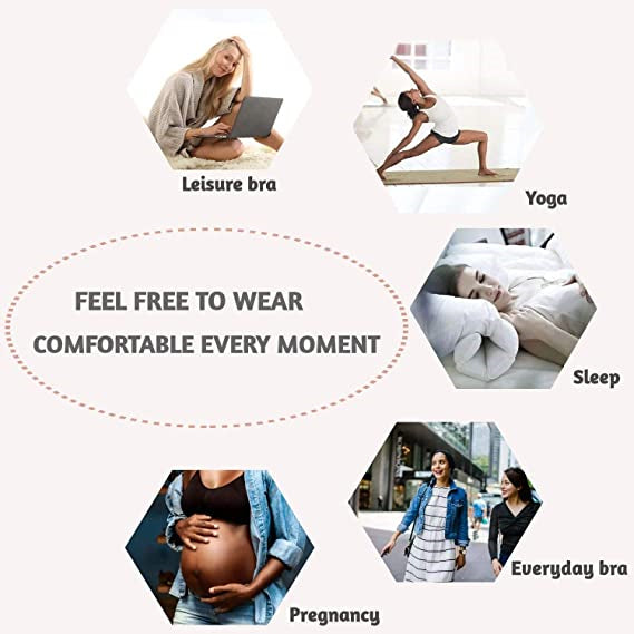 Comfort Sleeping Bra: Non wired no buckle, super comfortable to wear in 24 hours. Pull out the pads, you can enjoy more comfort as sleeping bra.