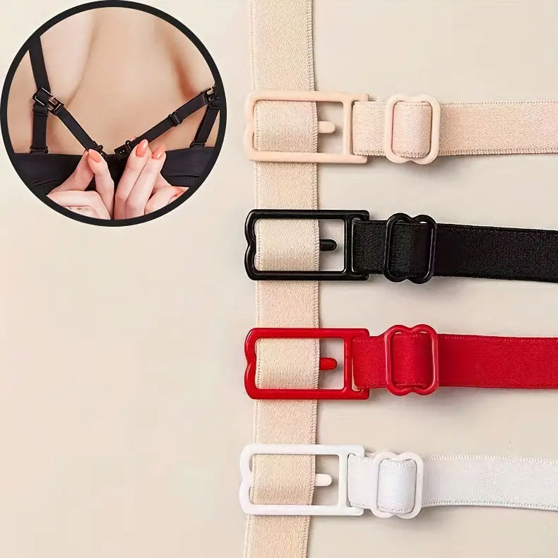 Colors: beige, white, black and pink, these four colors can match with most of your bras, good as replacements for bra strap holders.