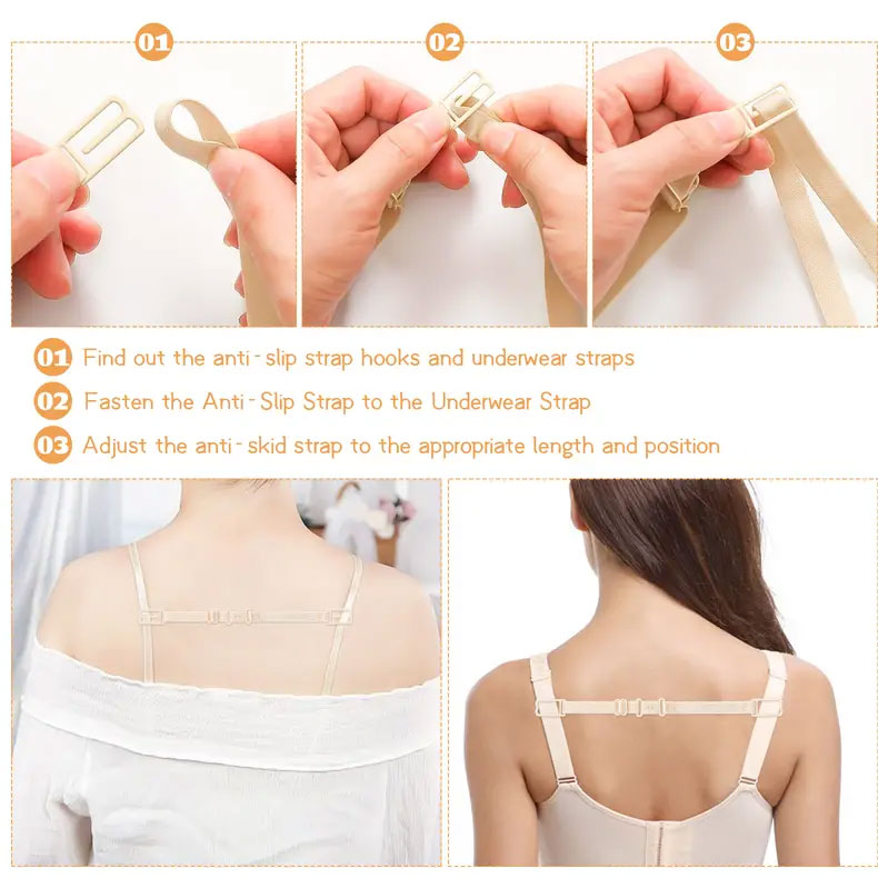 Non-slip bra holders: these bra strap holders can connect both of your bra shoulder straps from the back thus to keep them connected and prevent them from slipping off.