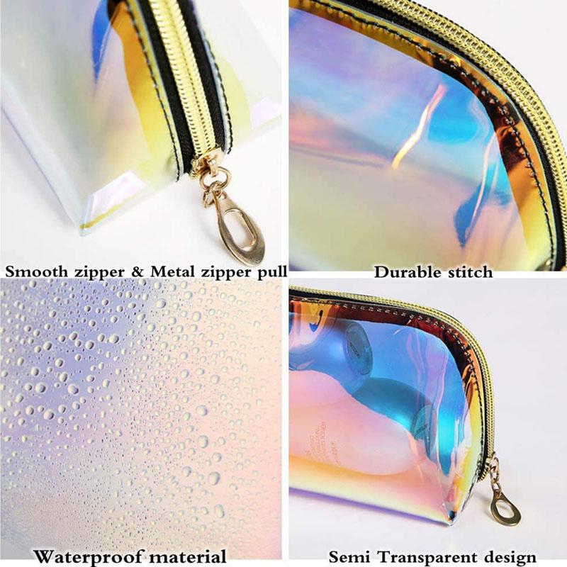Reusable & Waterproof: This hologram makeup bag is crafted from Scratch-resistant/Durable/Water-resistant high-quality TPU (better than PVC) material, completed with a sturdy silver zipper to keep your makeup in place.