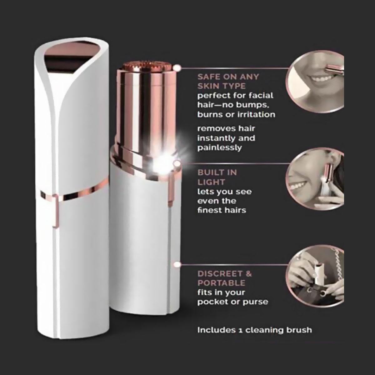 Give your skin a beautiful look with this facial hair remover. Instantly erase peach fuzz, whisk away whiskers. Your skin will look clear and smooth with just a touch of the button. Safe to use on all skin types.