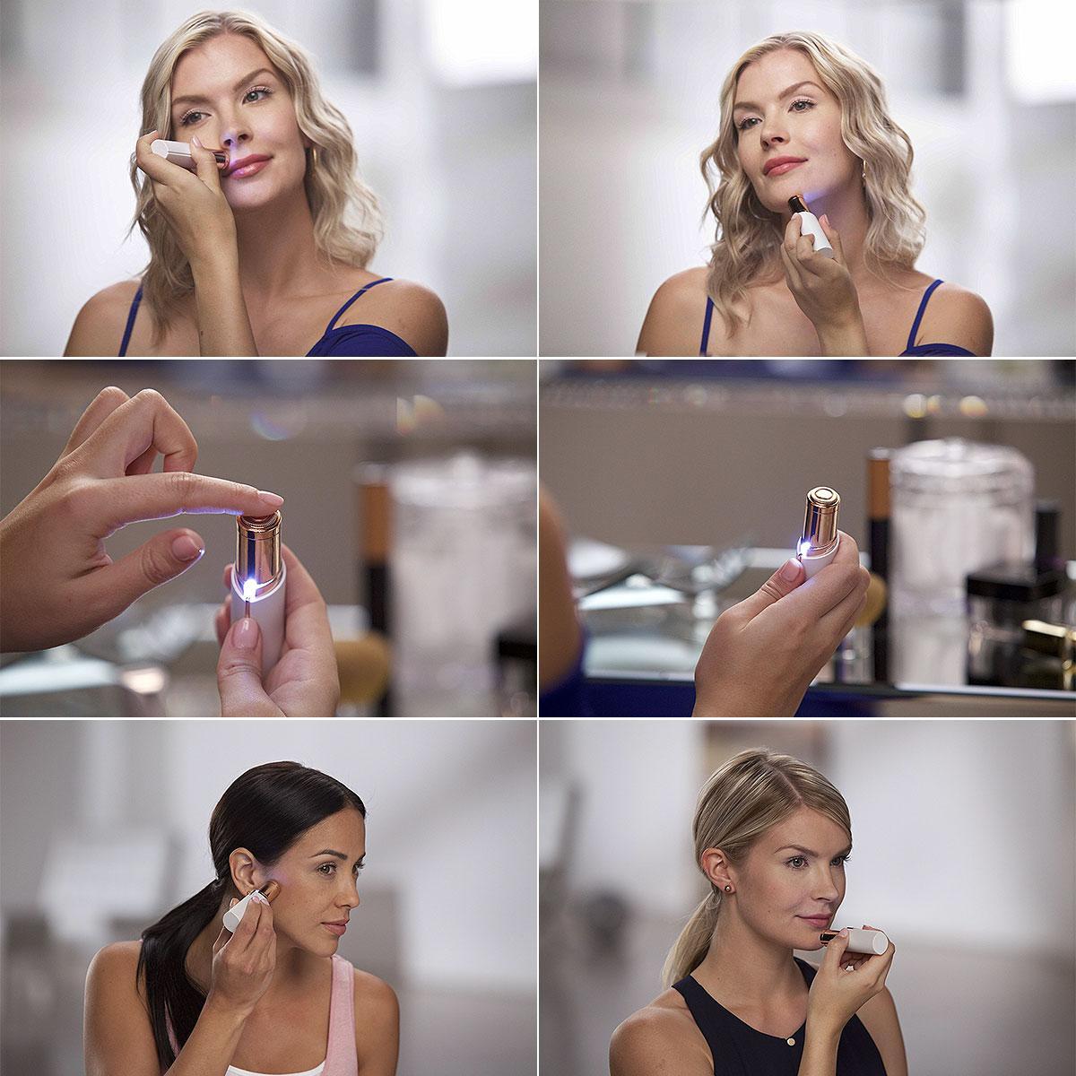 Discreet-looking hair remover features a built-in light to accurately remove unwanted hair around your mouth, cheeks or chin – leaving you with silky, radiant skin.
