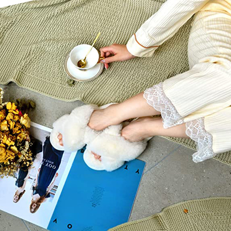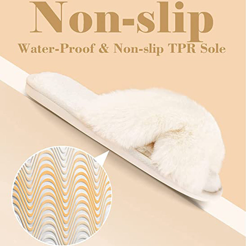 APPLY TO MULTI OCCASION: Whether a pajamas party, wedding, date or travel, you can match the fuzzy cross band open-toed slippers with dress, T-shirts, jeans, shorts, any casual wear.