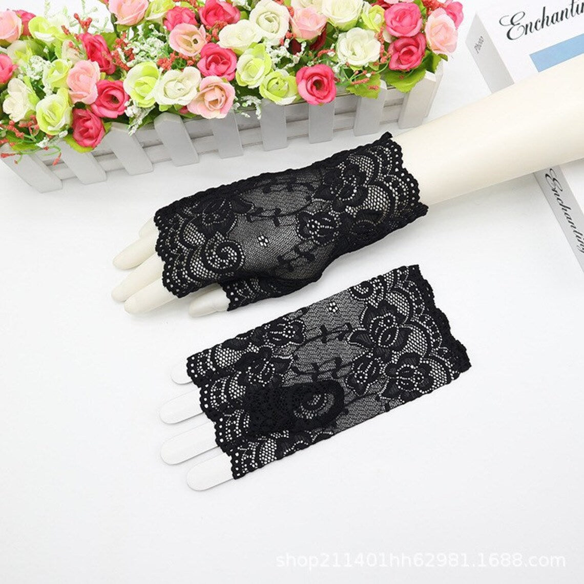 Lace Gloves: Features intricate floral lace patterns for an elegant and exquisite style.