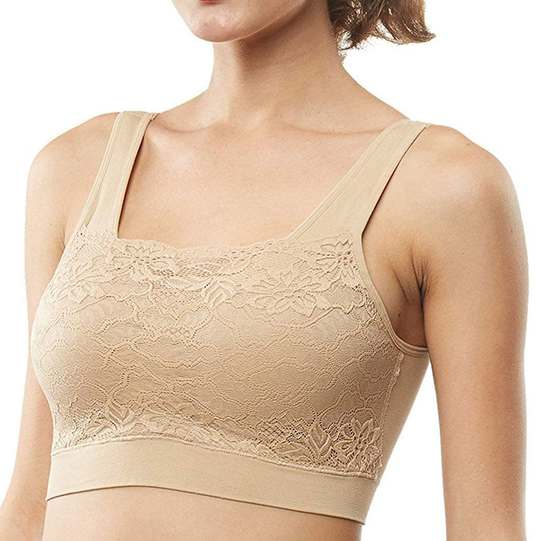 Full-Coverage Lace Overlay Sports Bra is very versatile - perfect as every day bra and sports bra. This seamless bra is breathable and comfortable, smooth and stretchy.