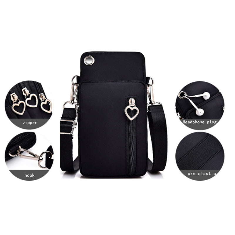 Headphone Hole & Elastic Arm Band- Cell phone bag with headphone hole, put your headset through the earphone hole at the bottom and connect your phone. Elastic arm band can be use as a cell phone armband for running.