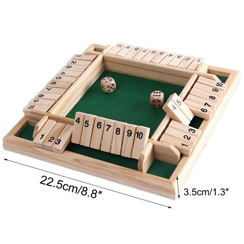DURABLE & THOUGHTFUL: High quality wood and solid structure make this shut the box very durable, we added 2 extra dice in the package to avoid being unable to use due to the loss of dice.
